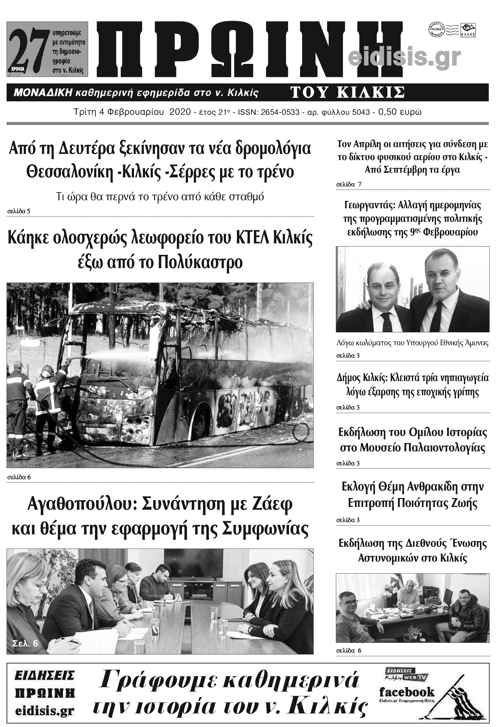 Διαβάστε το νέο πρωτοσέλιδο της Πρωινής του Κιλκίς, μοναδικής καθημερινής εφημερίδας του ν. Κιλκίς (4-2-2020)