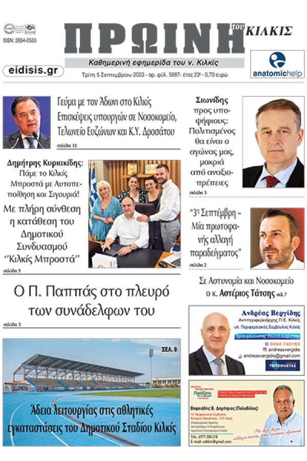 Διαβάστε το νέο πρωτοσέλιδο της Πρωινής του Κιλκίς, μοναδικής καθημερινής εφημερίδας του ν. Κιλκίς (5-9-2023)