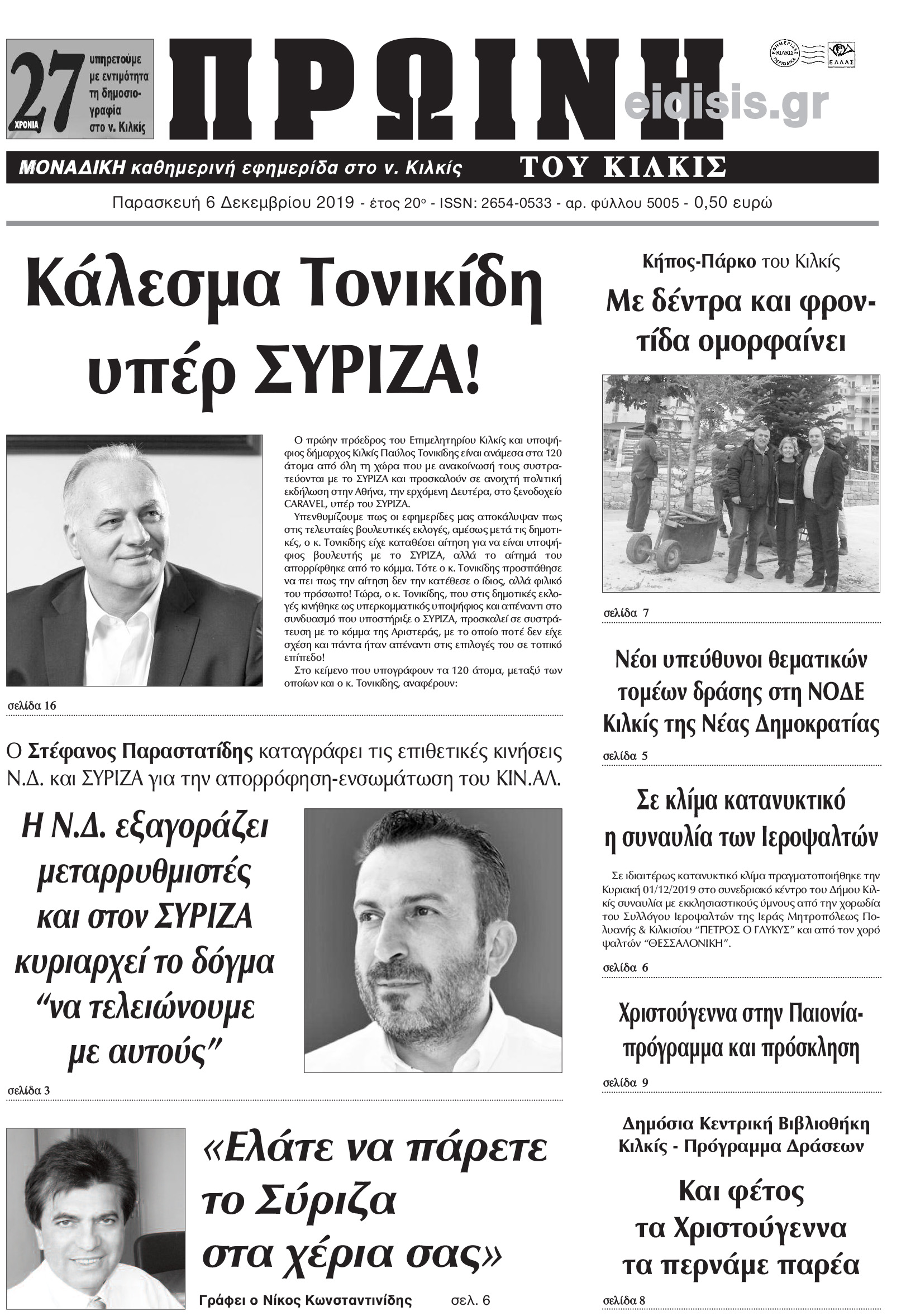 Διαβάστε το νέο πρωτοσέλιδο της Πρωινής του Κιλκίς, μοναδικής καθημερινής εφημερίδας του ν. Κιλκίς (6-12-2019)