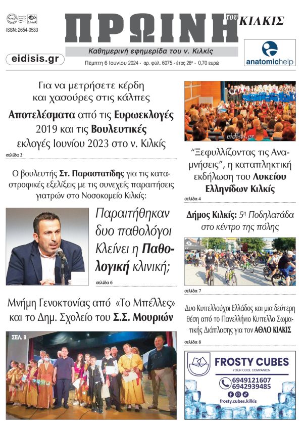 Διαβάστε το νέο πρωτοσέλιδο της Πρωινής του Κιλκίς, μοναδικής καθημερινής εφημερίδας του ν. Κιλκίς (6-6-2024)