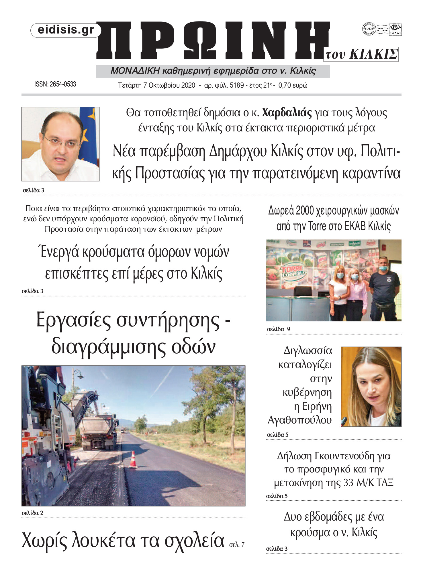 Διαβάστε το νέο πρωτοσέλιδο της Πρωινής του Κιλκίς, μοναδικής καθημερινής εφημερίδας του ν. Κιλκίς (7-10-2020)