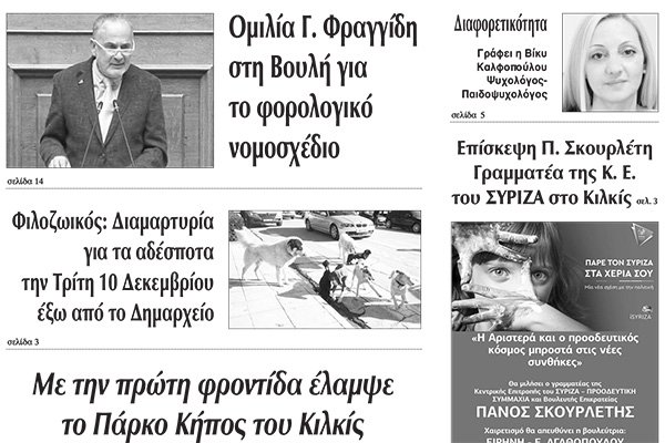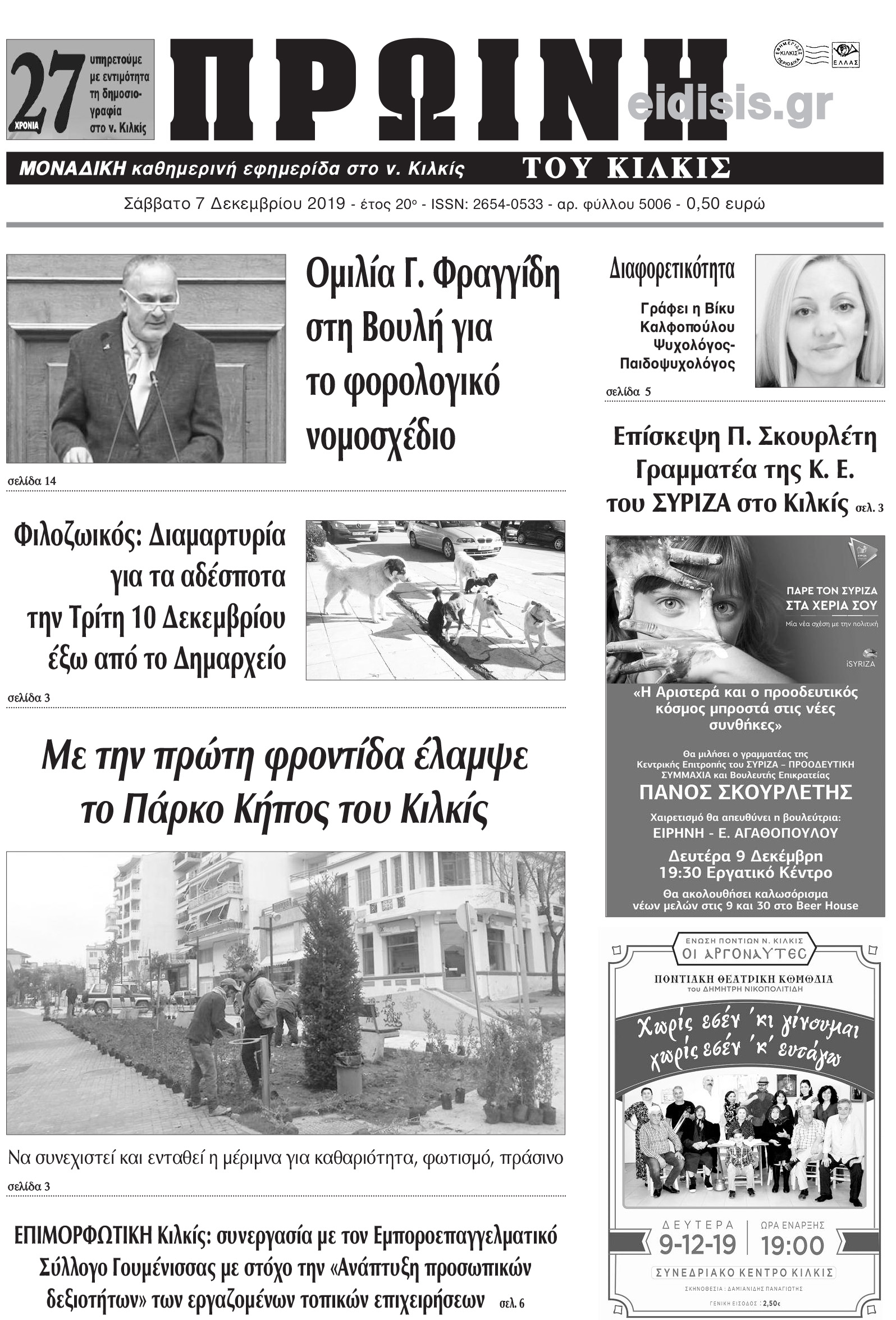 Διαβάστε το νέο πρωτοσέλιδο της Πρωινής του Κιλκίς, μοναδικής καθημερινής εφημερίδας του ν. Κιλκίς (7-12-2019)