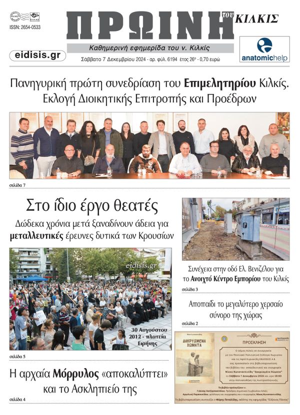 Διαβάστε το νέο πρωτοσέλιδο της Πρωινής του Κιλκίς, μοναδικής καθημερινής εφημερίδας του ν. Κιλκίς (7-12-2024)