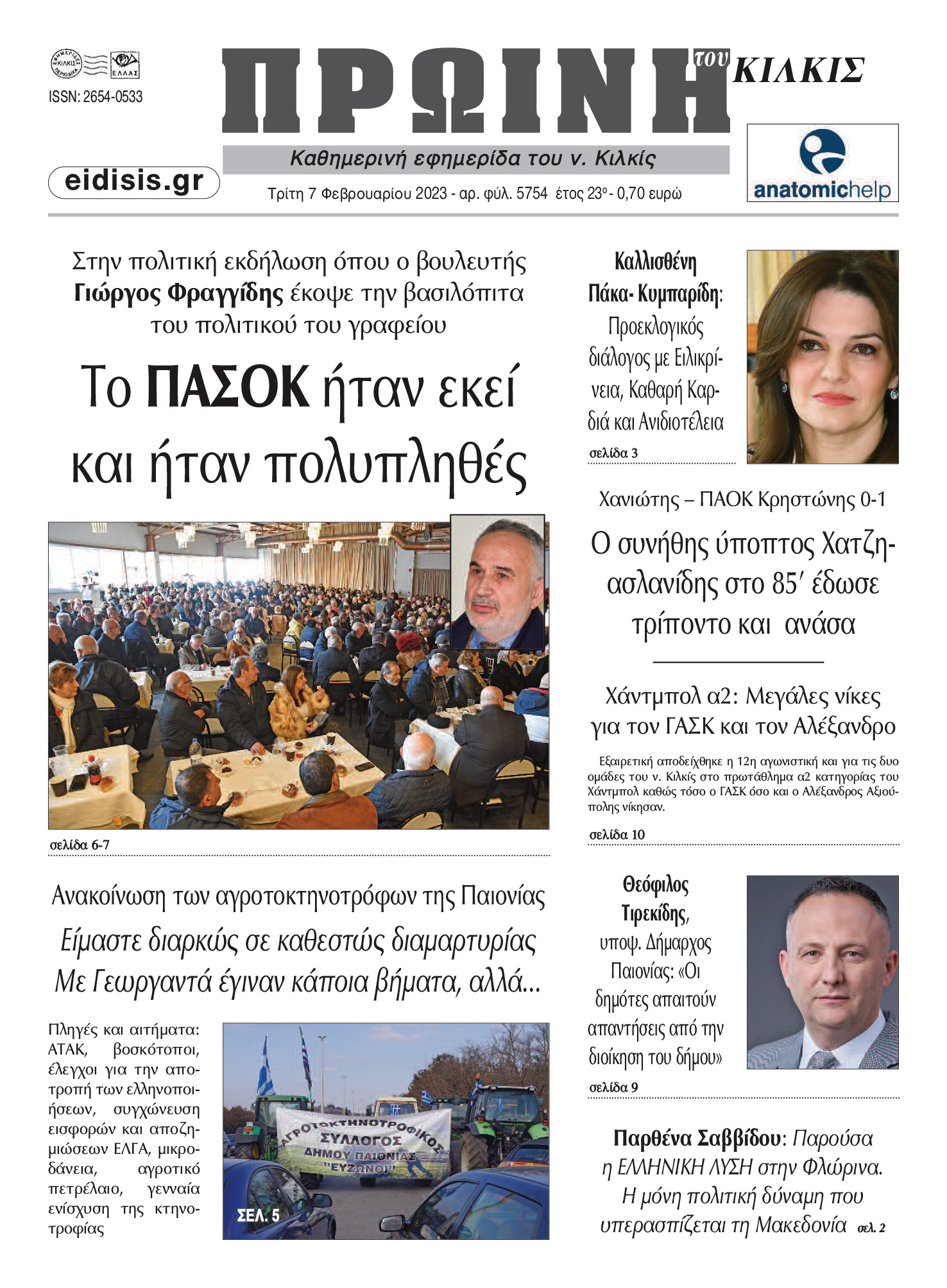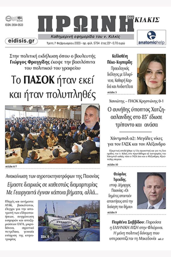 Διαβάστε το νέο πρωτοσέλιδο της Πρωινής του Κιλκίς, μοναδικής καθημερινής εφημερίδας του ν. Κιλκίς (7-2-2023)