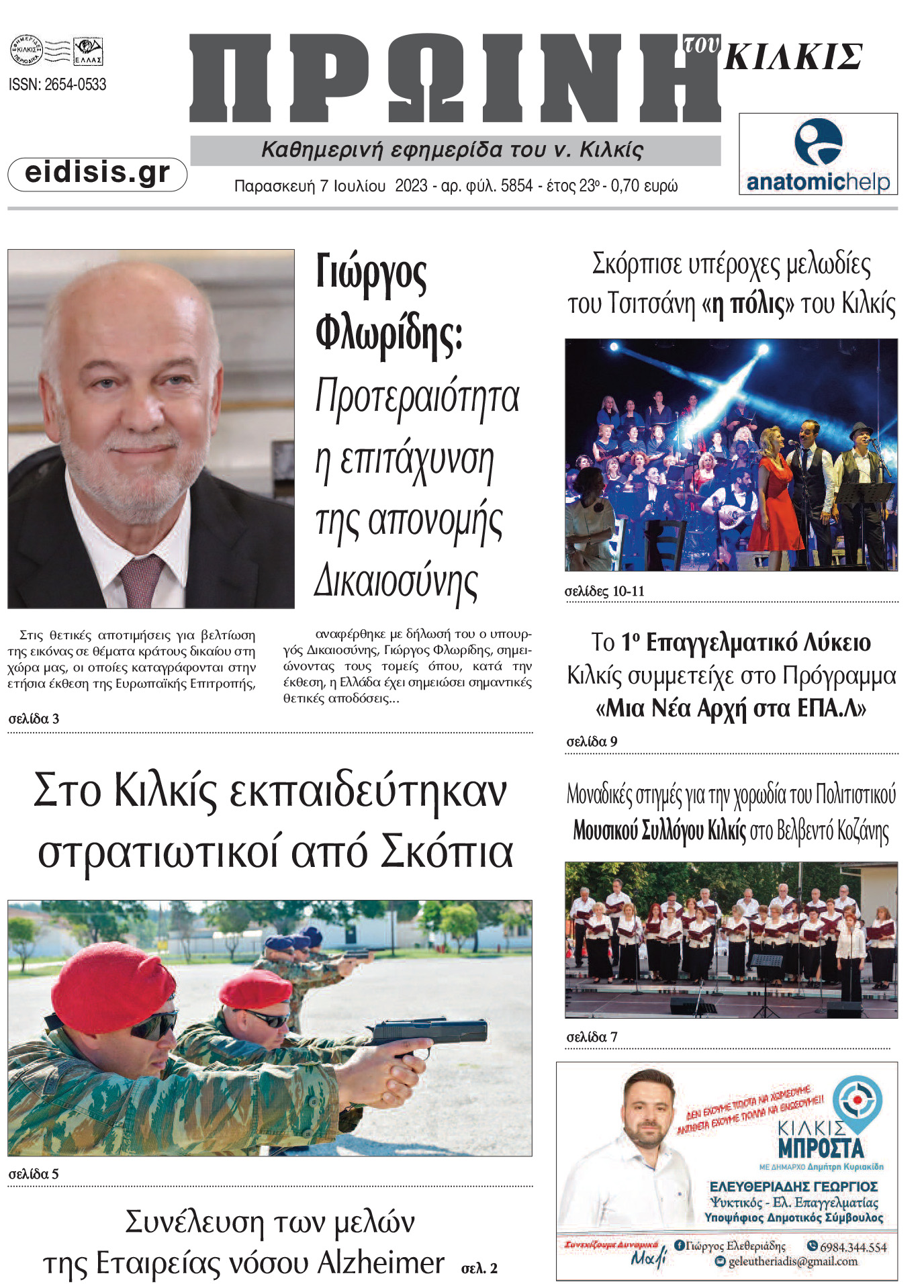 Διαβάστε το νέο πρωτοσέλιδο της Πρωινής του Κιλκίς, μοναδικής καθημερινής εφημερίδας του ν. Κιλκίς (7-7-2023)