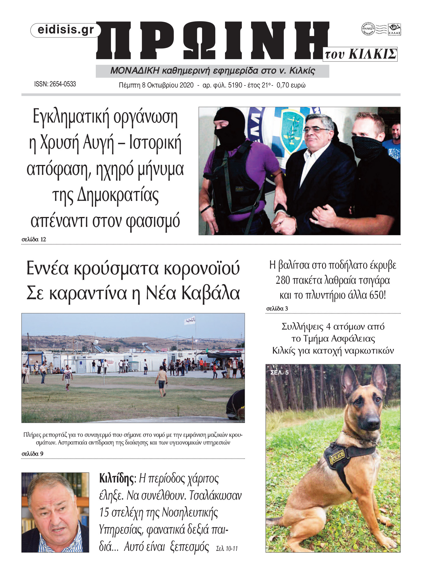 Διαβάστε το νέο πρωτοσέλιδο της Πρωινής του Κιλκίς, μοναδικής καθημερινής εφημερίδας του ν. Κιλκίς (8-10-2020)