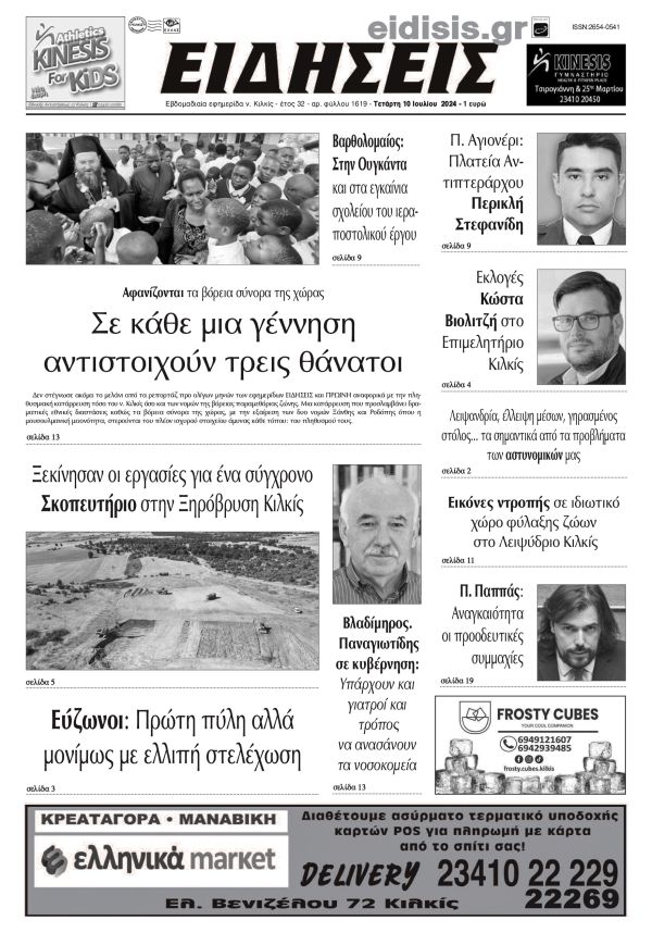 Διαβάστε το νέο πρωτοσέλιδο των ΕΙΔΗΣΕΩΝ του Κιλκίς, της εβδομαδιαίας εφημερίδας του ν. Κιλκίς (10-7-2024)