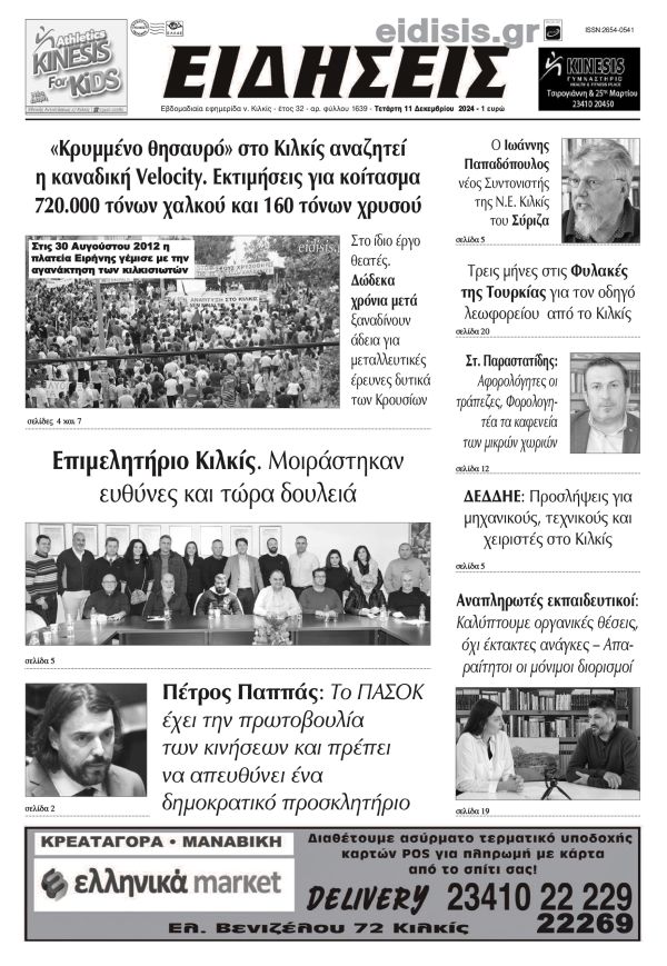 Διαβάστε το νέο πρωτοσέλιδο των ΕΙΔΗΣΕΩΝ του Κιλκίς, της εβδομαδιαίας εφημερίδας του ν. Κιλκίς (11-12-2024)