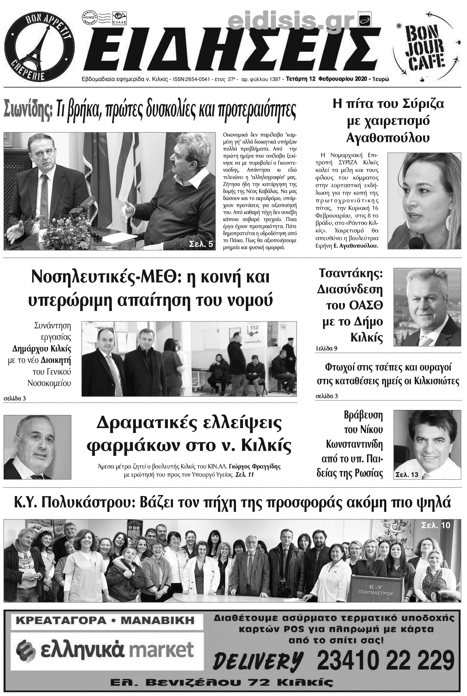 Διαβάστε το νέο πρωτοσέλιδο των ΕΙΔΗΣΕΩΝ του Κιλκίς, της εβδομαδιαίας εφημερίδας του ν. Κιλκίς (12-2-2020)
