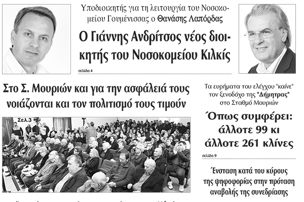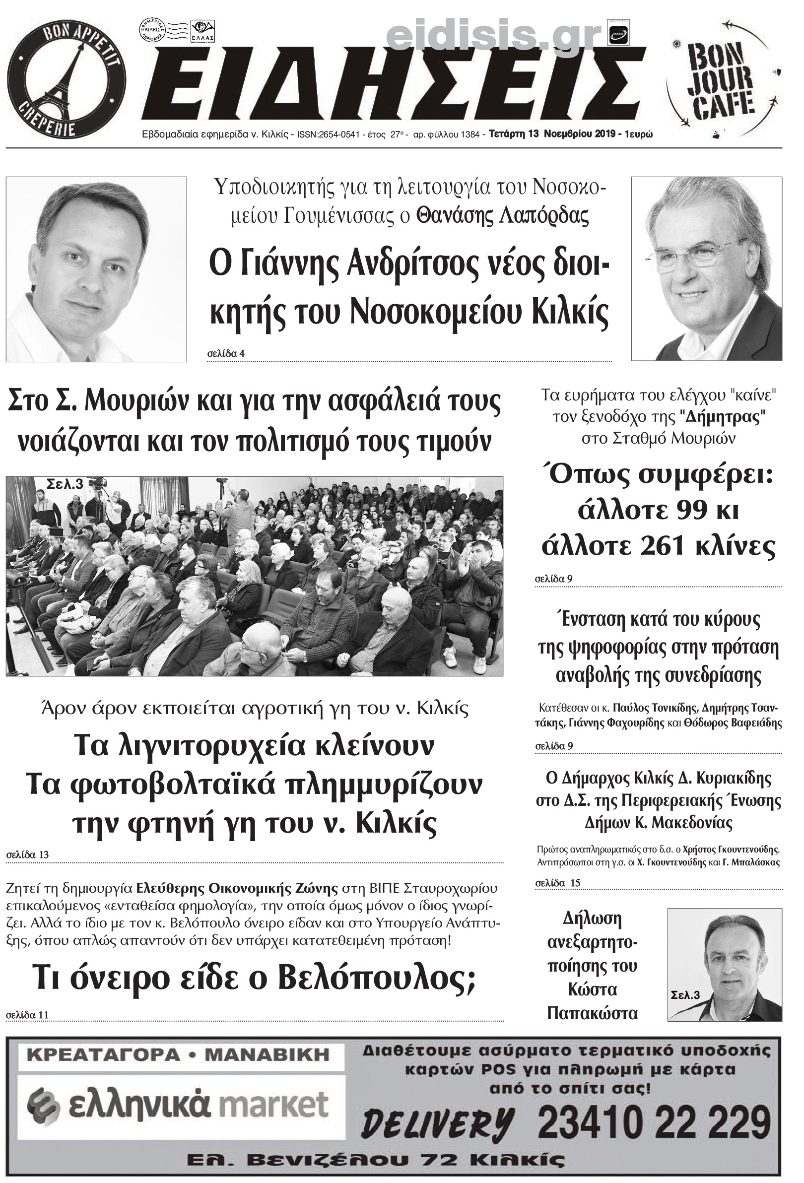 Διαβάστε το νέο πρωτοσέλιδο των ΕΙΔΗΣΕΩΝ του Κιλκίς, της εβδομαδιαίας εφημερίδας του ν. Κιλκίς (13-11-2019)