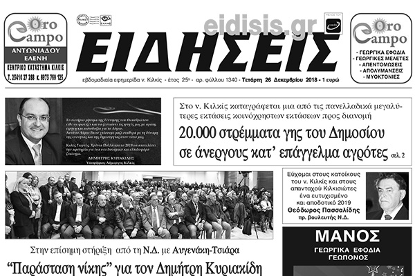 Διαβάστε το νέο πρωτοσέλιδο των ΕΙΔΗΣΕΩΝ του Κιλκίς, της εβδομαδιαίας εφημερίδας του ν. Κιλκίς