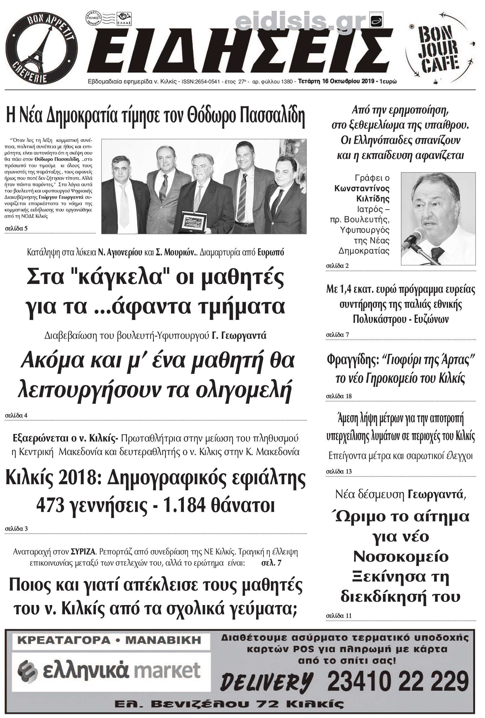 Διαβάστε το νέο πρωτοσέλιδο των ΕΙΔΗΣΕΩΝ του Κιλκίς, της εβδομαδιαίας εφημερίδας του ν. Κιλκίς (16-10-2019)