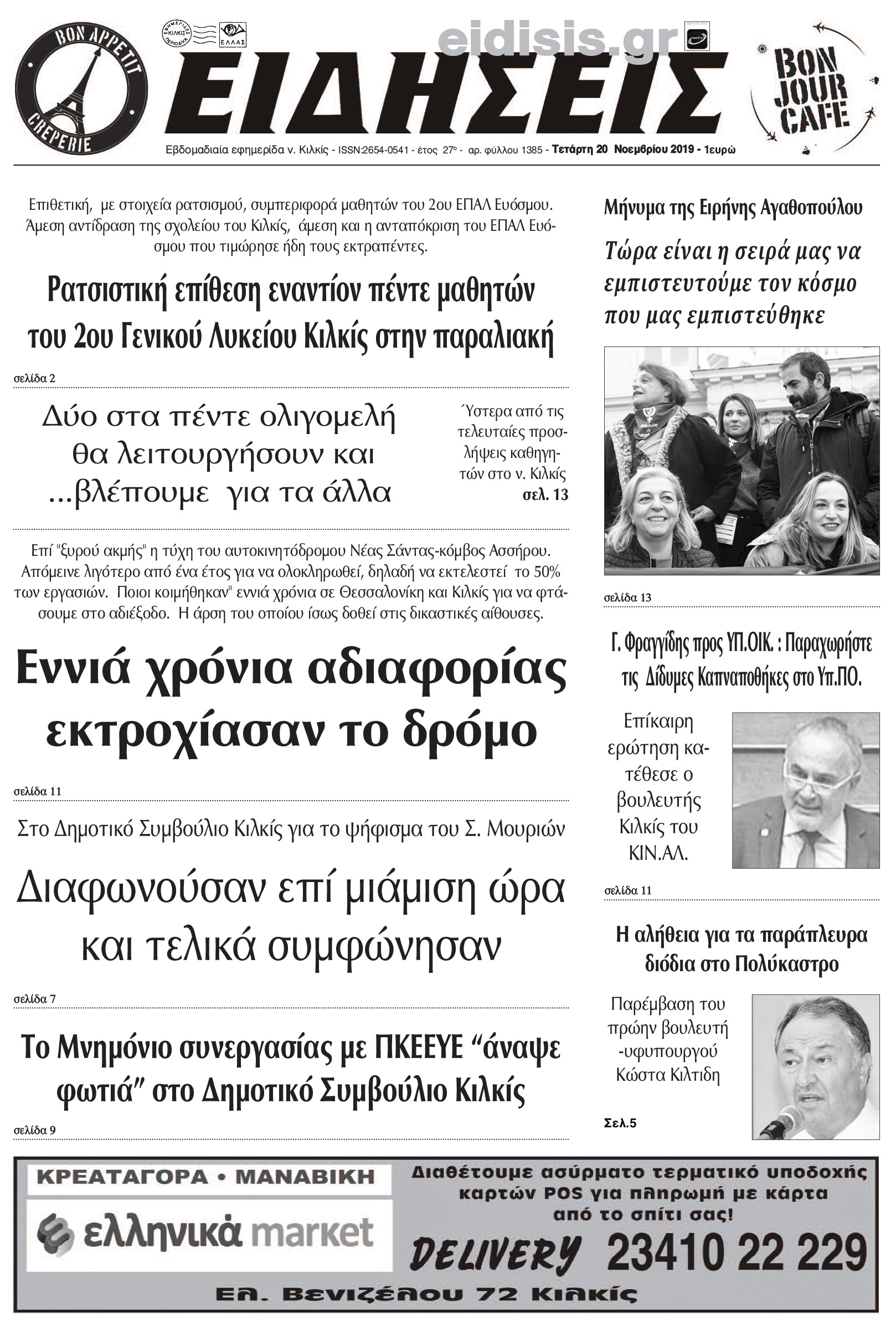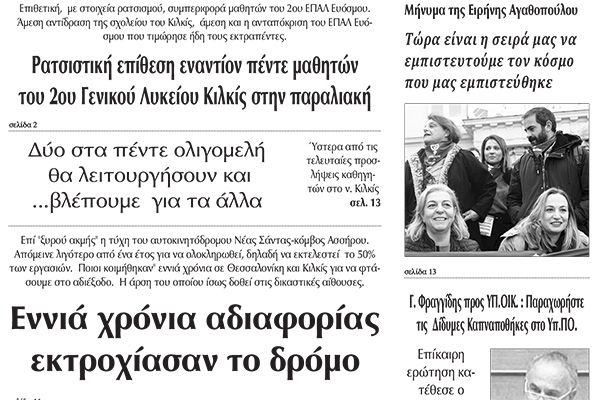 Διαβάστε το νέο πρωτοσέλιδο των ΕΙΔΗΣΕΩΝ του Κιλκίς, της εβδομαδιαίας εφημερίδας του ν. Κιλκίς (20-11-2019)