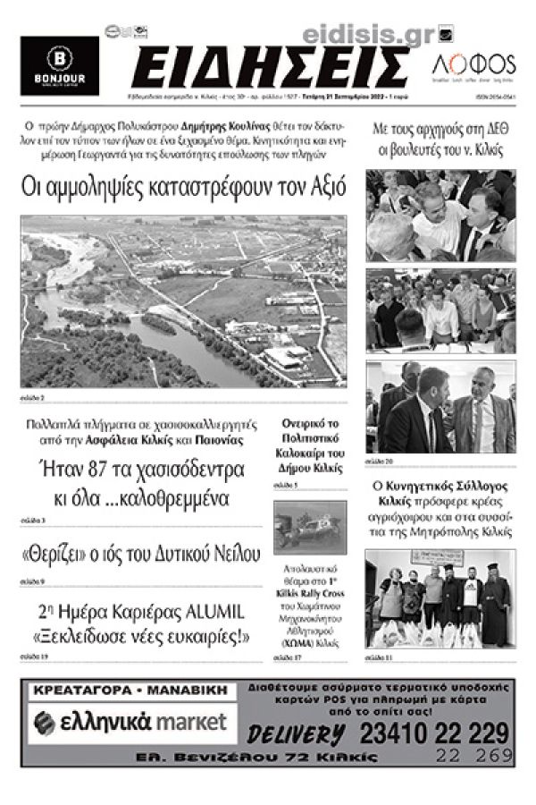 Διαβάστε το νέο πρωτοσέλιδο των ΕΙΔΗΣΕΩΝ του Κιλκίς, της εβδομαδιαίας εφημερίδας του ν. Κιλκίς (21-9-2022)