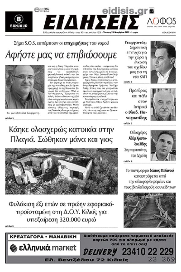 Διαβάστε το νέο πρωτοσέλιδο των ΕΙΔΗΣΕΩΝ του Κιλκίς, της εβδομαδιαίας εφημερίδας του ν. Κιλκίς (23-11-2022)