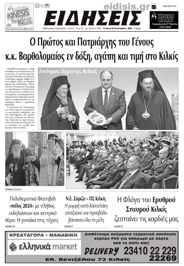 Διαβάστε το νέο πρωτοσέλιδο των ΕΙΔΗΣΕΩΝ του Κιλκίς, της εβδομαδιαίας εφημερίδας του ν. Κιλκίς (25-9-2024)