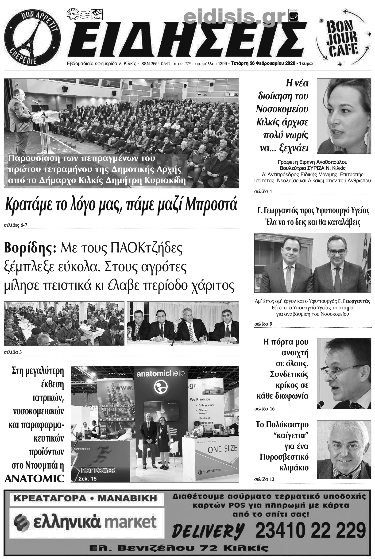 Διαβάστε το νέο πρωτοσέλιδο των ΕΙΔΗΣΕΩΝ του Κιλκίς, της εβδομαδιαίας εφημερίδας του ν. Κιλκίς (26-2-2020)