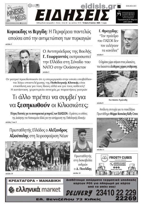 Διαβάστε το νέο πρωτοσέλιδο των ΕΙΔΗΣΕΩΝ του Κιλκίς, της εβδομαδιαίας εφημερίδας του ν. Κιλκίς (3-7-2024)