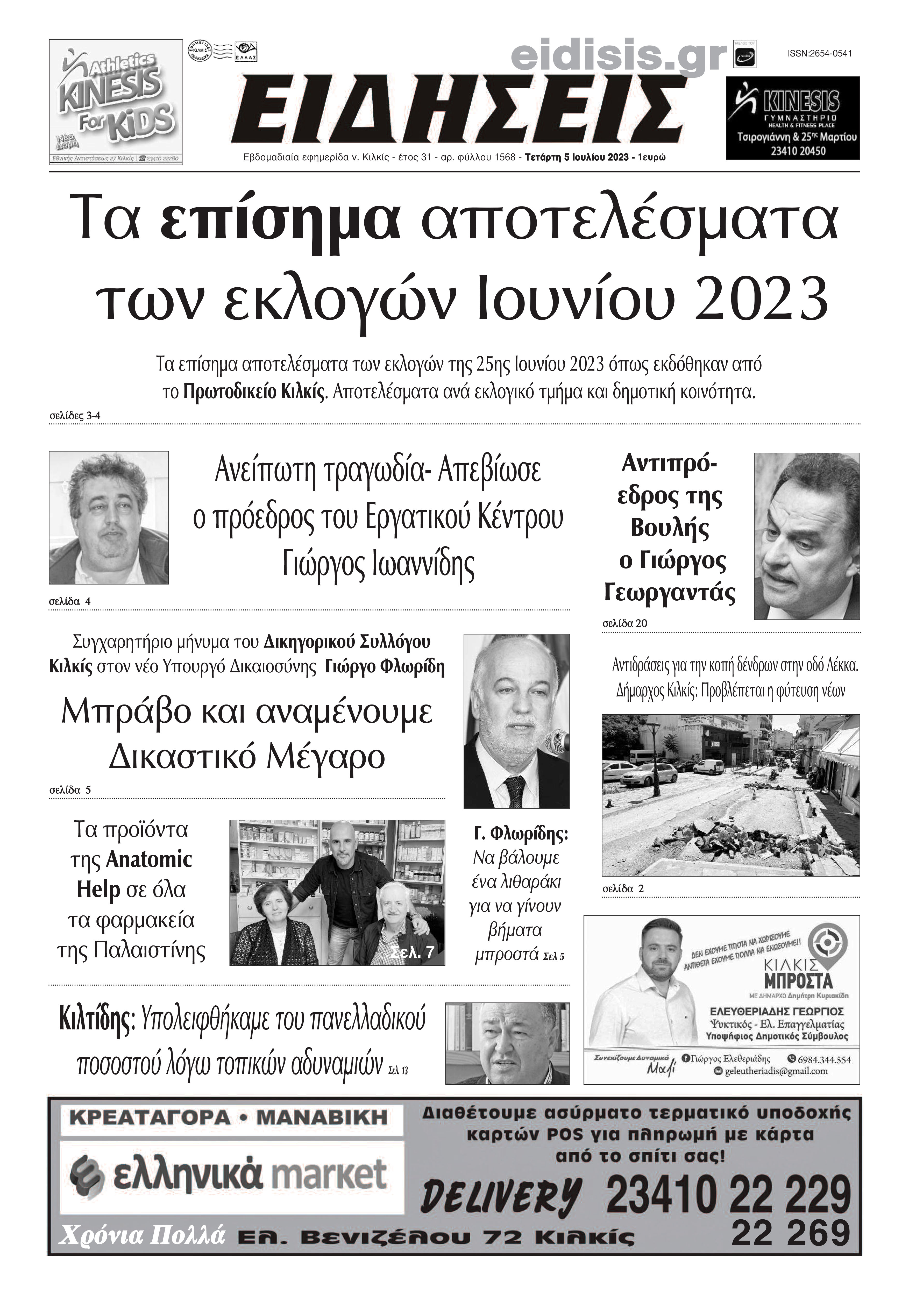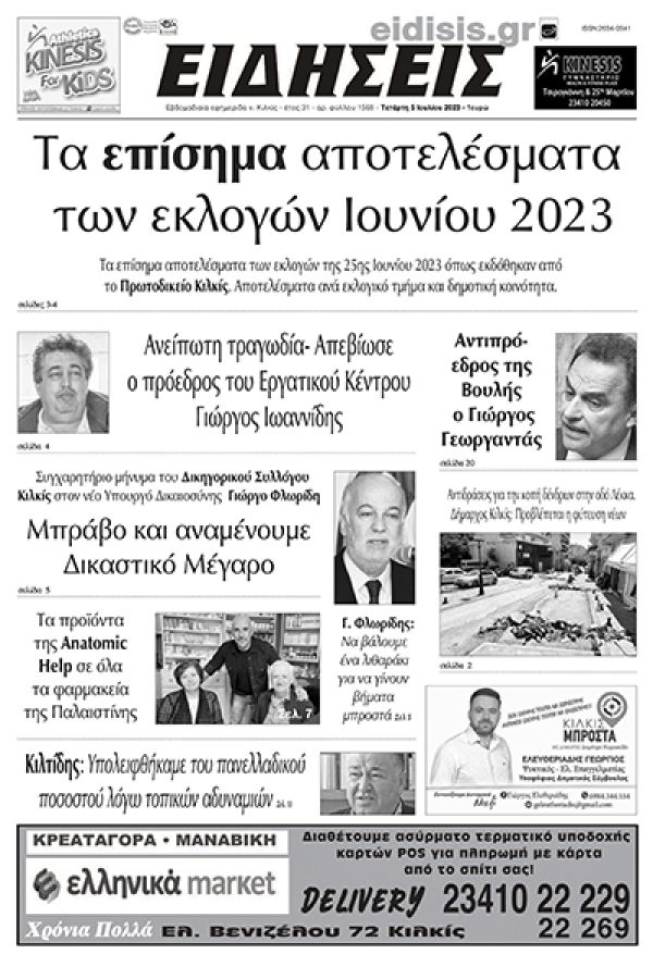 Διαβάστε το νέο πρωτοσέλιδο των ΕΙΔΗΣΕΩΝ του Κιλκίς, της εβδομαδιαίας εφημερίδας του ν. Κιλκίς (5-7-2023)