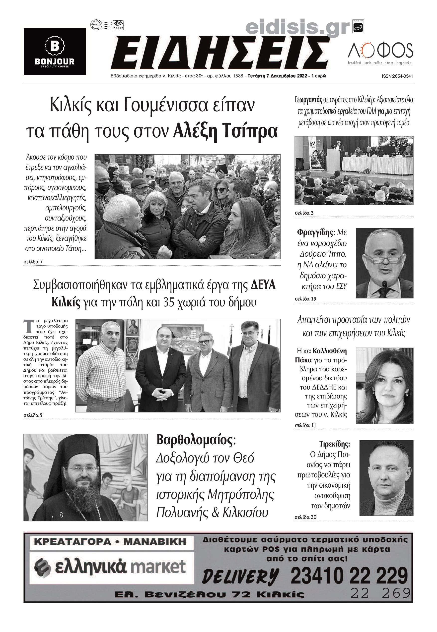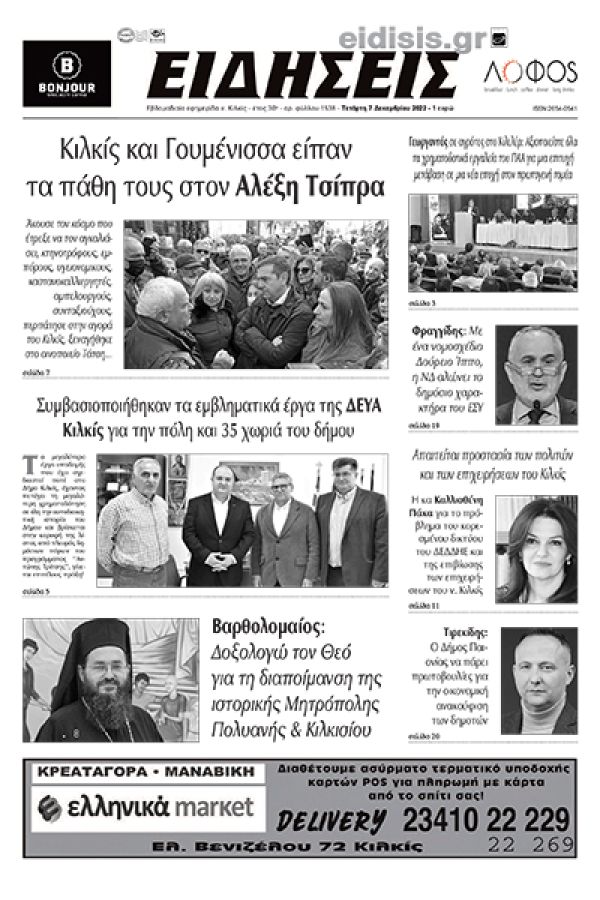 Διαβάστε το νέο πρωτοσέλιδο των ΕΙΔΗΣΕΩΝ του Κιλκίς, της εβδομαδιαίας εφημερίδας του ν. Κιλκίς (7-12-2022)