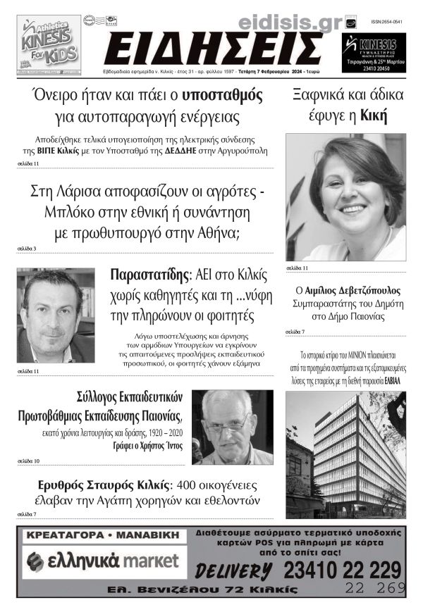 Διαβάστε το νέο πρωτοσέλιδο των ΕΙΔΗΣΕΩΝ του Κιλκίς, της εβδομαδιαίας εφημερίδας του ν. Κιλκίς (7-2-2024)