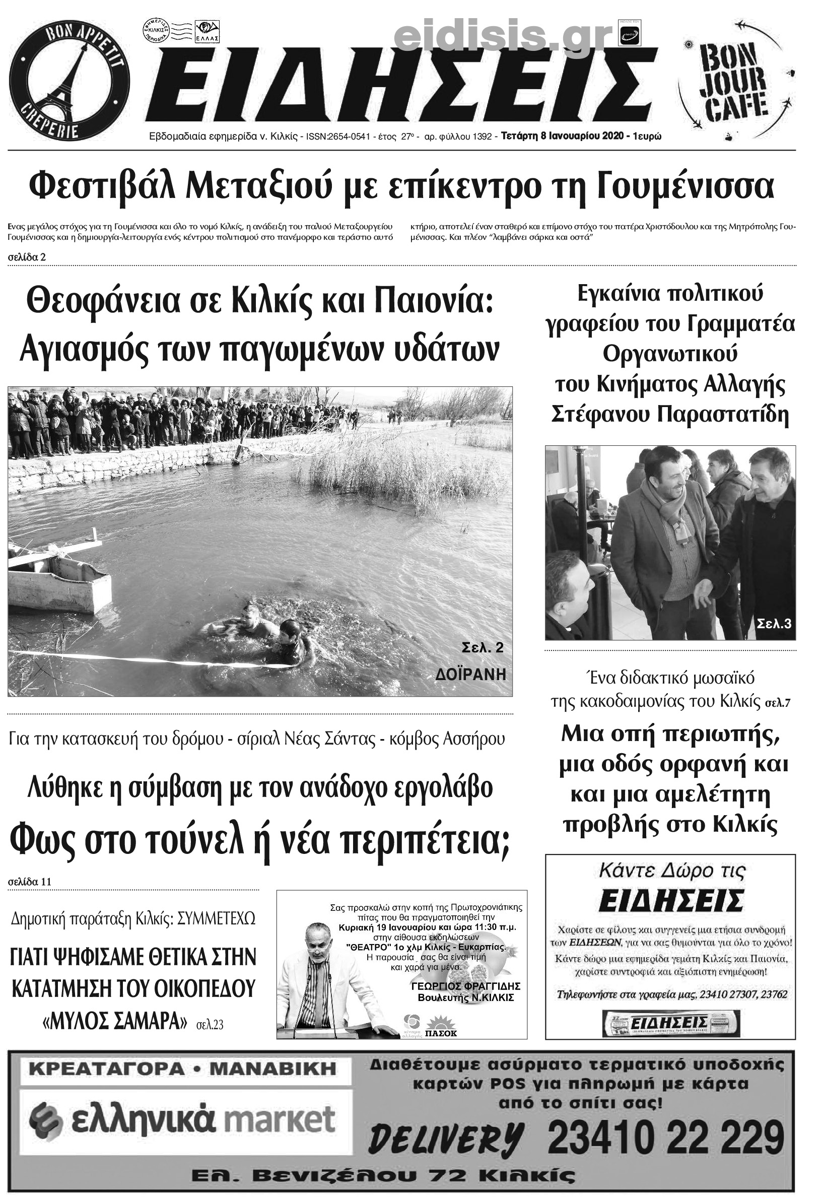 Διαβάστε το νέο πρωτοσέλιδο των ΕΙΔΗΣΕΩΝ του Κιλκίς, της εβδομαδιαίας εφημερίδας του ν. Κιλκίς (8-1-2020)