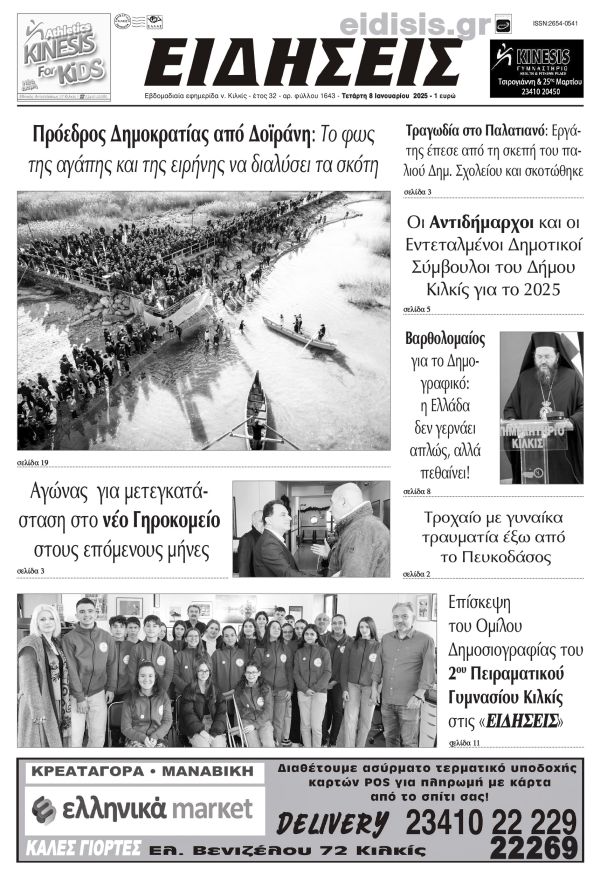 Διαβάστε το νέο πρωτοσέλιδο των ΕΙΔΗΣΕΩΝ του Κιλκίς, της εβδομαδιαίας εφημερίδας του ν. Κιλκίς (8-1-2025)