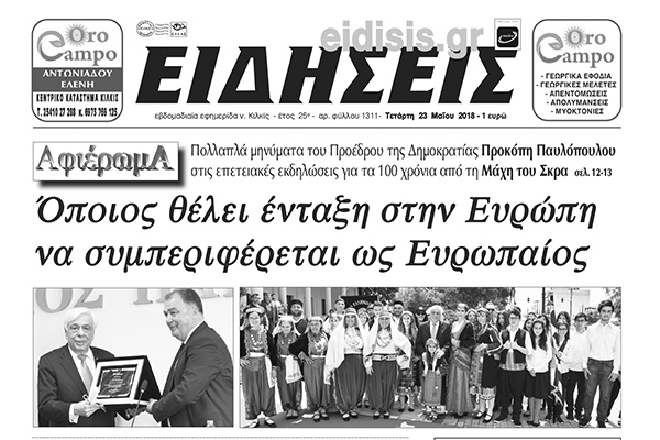 Διαβάστε το νέο πρωτοσέλιδο των ΕΙΔΗΣΕΩΝ του Κιλκίς, της εβδομαδιαίας εφημερίδας του ν. Κιλκίς