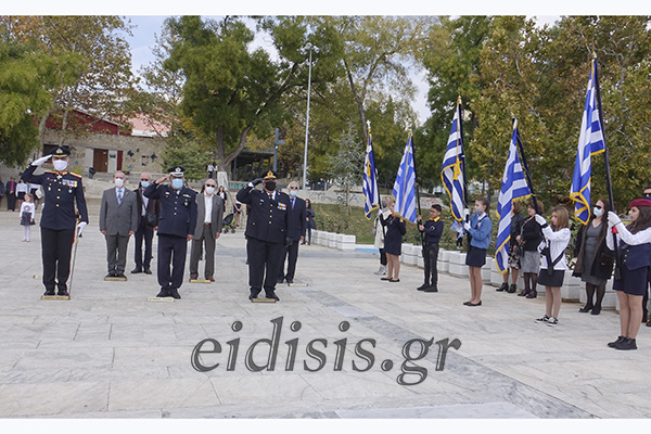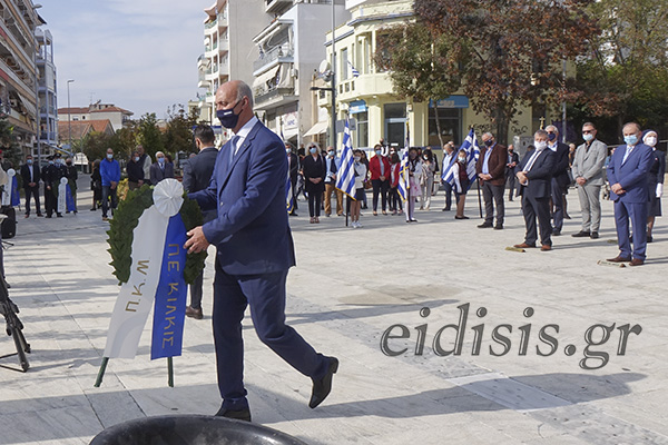 Αμέσως μετά πραγματοποιήθηκε η κατάθεση στεφάνων από τις πολιτικές και στρατιωτικές αρχές στο μνημείο πεσόντων στο κεντρικό πάρκο της πόλης.