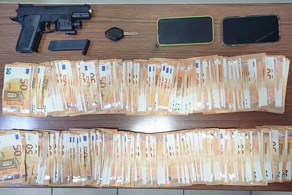 Σε έρευνα του οχήματος που επέβαιναν, εντοπίστηκε επιμελώς κρυμμένο το χρηματικό ποσό των 17.200 ευρώ, το οποίο αποδόθηκε στην παθούσα. Επίσης στο όχημά τους βρέθηκε και κατασχέθηκε μία απομίμηση πιστολιού (ρέπλικα).