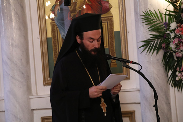 Εξέφρασε τις θερμές ευχαριστίες του προς όλους όσοι συνέβαλαν με τον τρόπο τους στην κατασκευή και ολοκλήρωση του Πνευματικού Κέντρου, αρχίζοντας με τη μνήμη του πατρός Σεβαστιανού Κωνσταντινίδη, Ιεροκήρυκος της Ιεράς Μητροπόλεως, ο οποίος άφησε στη διαθήκη του ένα σημαντικό ποσό για την έναρξη των εργασιών.