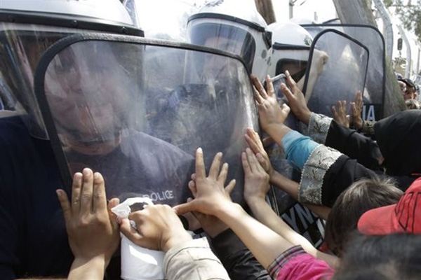 Οι πρόσφυγες που είχαν συγκεντρωθεί στον φράχτη στην ουδέτερη ζώνη, φώναζαν συνθήματα για να ανοίξουν τα σύνορα απέναντι στους αστυνομικούς της ΠΓΔΜ.