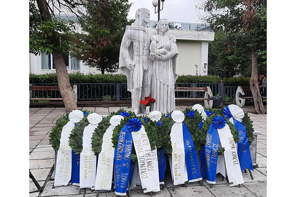 Στη συνέχεια, μπροστά από το Μνημείο του Ποντιακού Ελληνισμού, στην πλατεία Ειρήνης, τελέστηκε επιμνημόσυνη δέηση από τον Πρωτοσύγκελλο της Ι.Μ. Μητροπόλεως Πολυανής και Κιλκισίου Αρχιμ. Επιφάνιο Θεοδωρίδη και ακολούθησε κατάθεση στεφάνων, σε μια σεμνή τελετή, στη διάρκεια της οποίας οι εκπρόσωποι της Εκκλησίας, των τοπικών αρχών και των ποντιακών σωματείων απέτισαν τον οφειλόμενο φόρο τιμής στη μνήμη των εκατοντάδων χιλιάδων θυμάτων Ελλήνων του Πόντου.