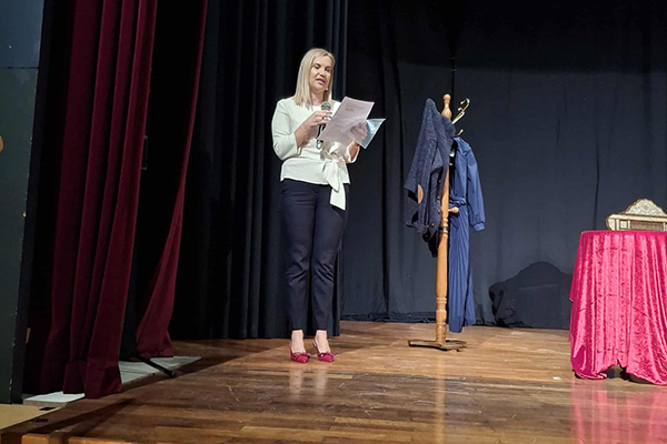 Η βραδιά έκλεισε με έναν πρωτοποριακό τρόπο: την πρώτη θεατρική παράσταση της νεοσύστατης θεατρικής ομάδας της Ένωσής μας. Το έργο «Η Εβραία» του Μπρεχτ παρουσιάστηκε σε επιμέλεια, σκηνοθεσία και ερμηνεία της συναδέλφου μας Ράφτη Μαρίας, με περιεχόμενο άμεσα συνδεδεμένο με το θέμα της εκδήλωσης.