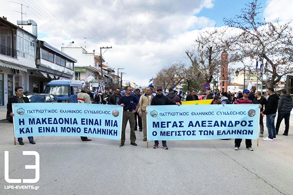 Κεντρικά συνθήματα στην πλατεία ήταν κατά των πολιτικών που πρόδωσαν την πατρίδα και πρέπει να οδηγηθούν στο Γουδί, «στα όπλα στα όπλα να πάρουμε τα Σκόπια», ενώ ομάδα διαδηλωτών στράφηκε και κατά του δημάρχου Παιονίας, Χρ. Γκουντενούδη, με υβριστικά συνθήματα σε βάρος του!