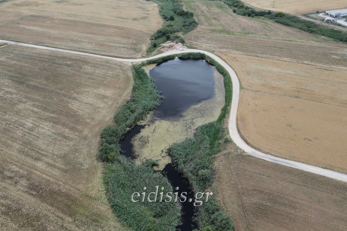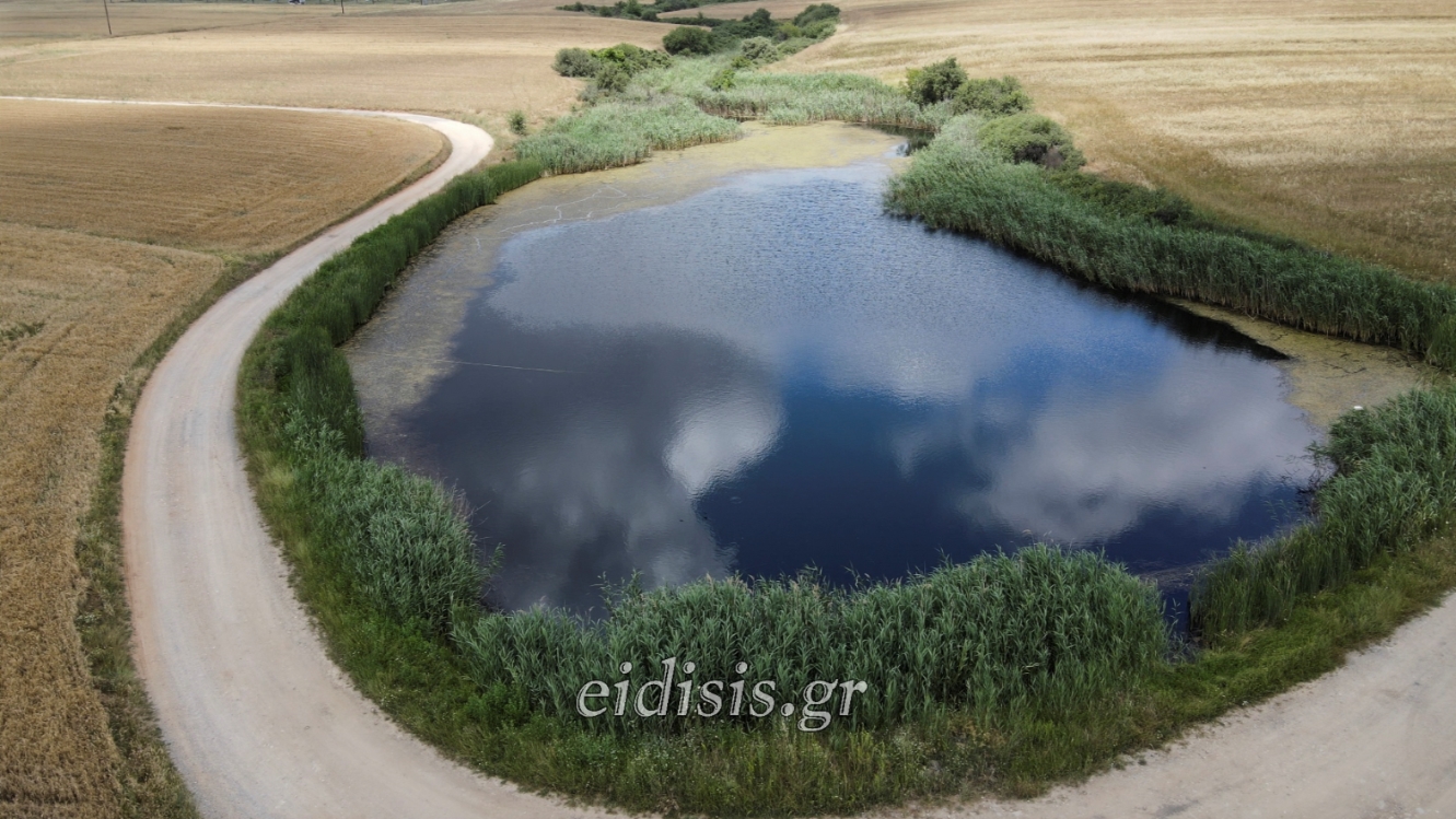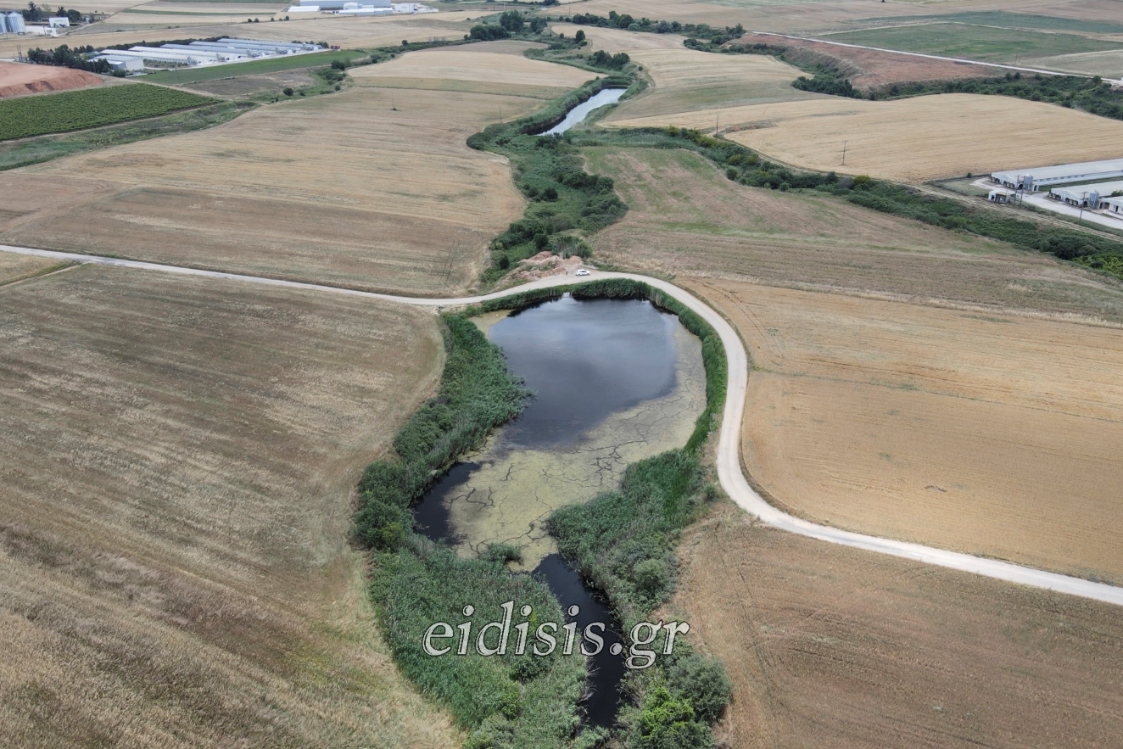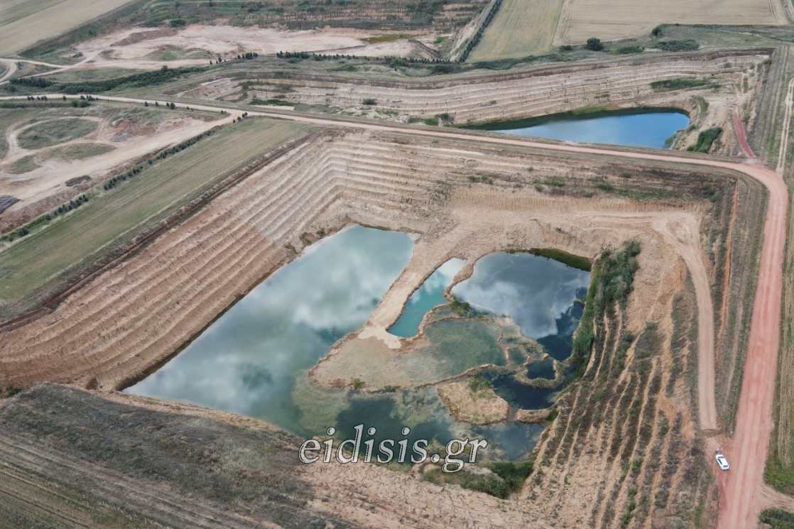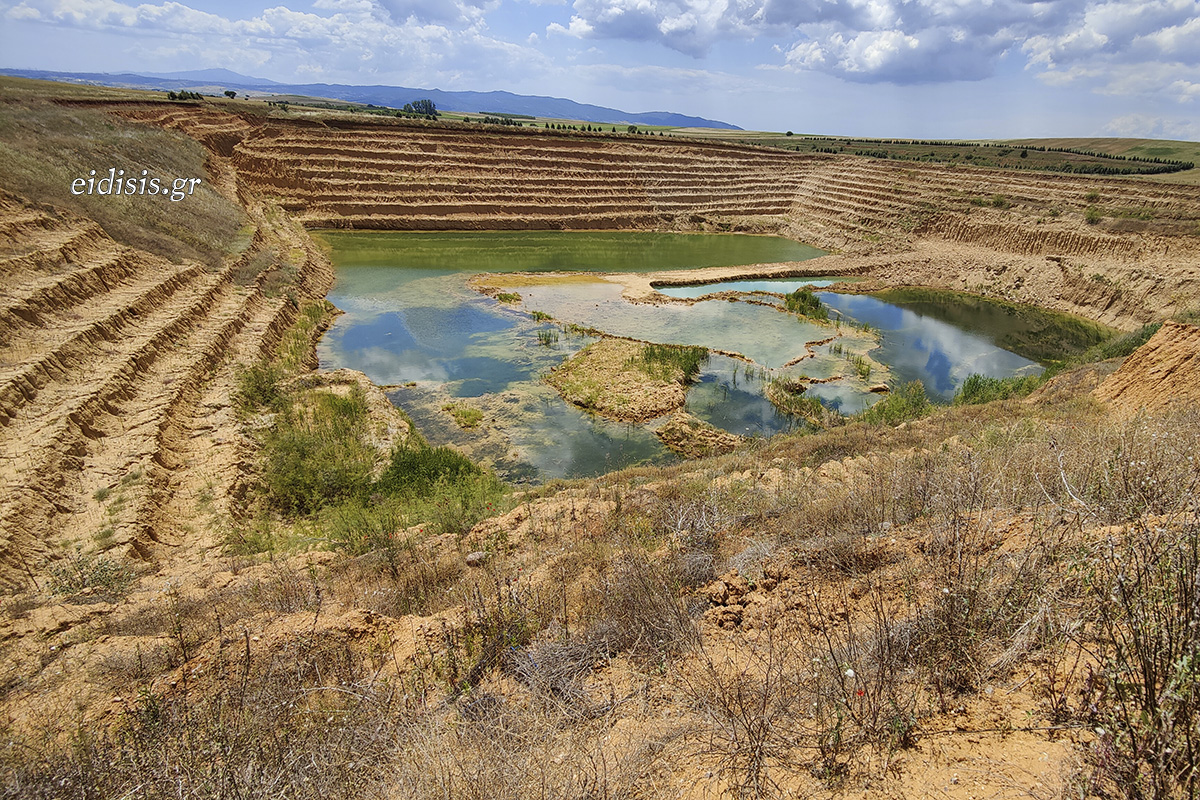 Η μεταφορά αργίλου από εργοστάσιο κεραμουργίας της περιοχής μετέτρεψε χωράφια σε σεληνιακό τοπίο, που όμως προσφέρει εντυπωσιακές εικόνες από τα βρόχινα νερά που συγκεντρώνονται σε αυτές τις λιμνοδεξαμενές.