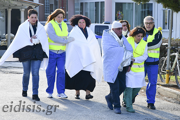Κι αμέσως αρχίζουν να ξετυλίγονται οι τραγικές σκηνές. Ασθενείς μεταφέρονται υποβασταζόμενοι από νοσηλευτικό προσωπικό ή με τη βοήθεια ασθενών ή συνοδών που είναι ικανοί να συνδράμουν στην προσπάθεια αυτή. Εχουμε συνολικά εννέα περιστατικά για ιατρική φροντίδα, από το Σταθμό Αιμοδοσίας, τη Μονάδα Τεχνητού Νεφρού, το Οφθ/κό τμήμα, τα τακτικά Εξωτερικά Ιατρεία, το Ψυχιατρικό τμήμα, το Ακτινολογικό και το τμήμα Φυσιοθεραπείας.