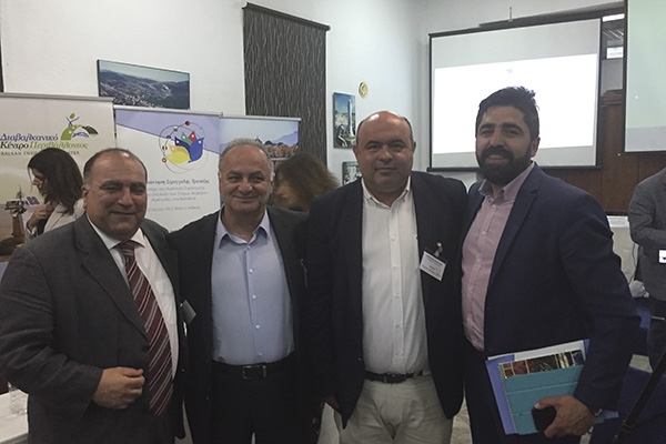 Φωτό από το συνέδριο οι εκπρόσωποι της επιχειρηματικότητας που τοποθετήθηκαν: Κυριάκος Λουφάκης(Πρόεδρος ΣΕΒΕ), Παύλος Τονικίδης(Αντιπρόεδρος ΚΕΕΕ), Συρίδων Μάμαλης(Πρόεδρος Γεωτεχνικού Επιμελητηρίου), Παπάς Θεοφάνης(Αντιπεριφερειάρχης Αγροτικής Οικονομίας)