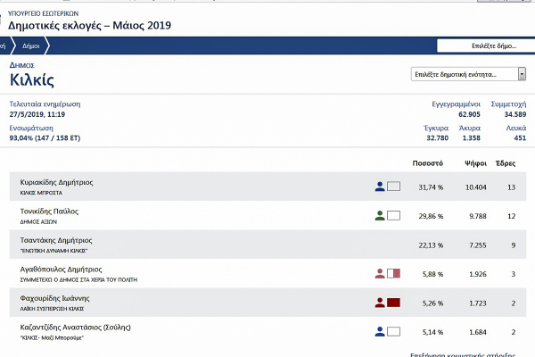 Επίσημα αποτελέσματα για το Δήμο Κιλκίς