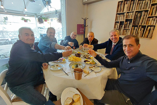 Μετά το πέρας της επίσκεψης αυτής και τη λήξη της υπηρεσίας του, ο Αστέριος ήρθε και μας συνάντησε σε γνωστό ζυθεστιατόριο όπου η παρέα έζησε στιγμές διασκέδασης και ευωχίας.