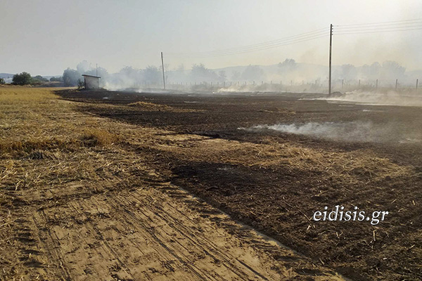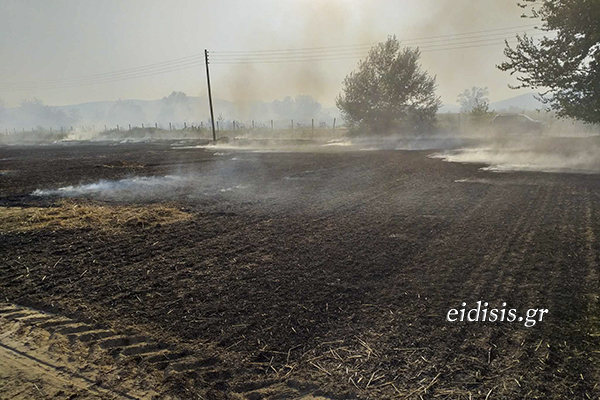 Η φωτιά εκδηλώθηκε στο αγρόκτημα των Αμαράντων και στο ύψος της σιδηροδρομικής γραμμής, με τον νοτιά να την οδηγεί προς το λεκανοπέδιο των Μουριών, καίγοντας κυρίως σιτοκαλαμιές, ενώ στην περιοχή υπάρχουν και εκτάσεις με καλαμπόκι.
