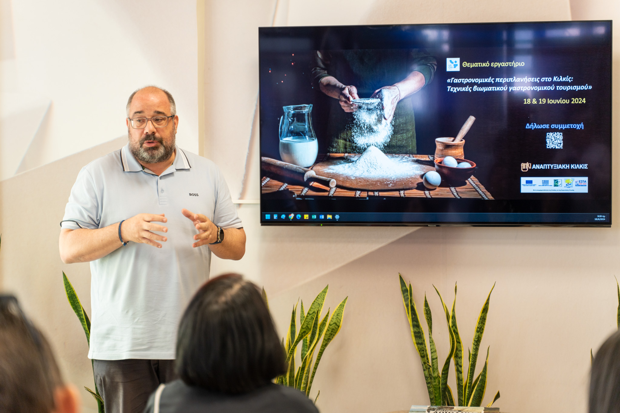 Ο κ. Παναγιώτης Κωνσταντινίδης, Γενικός Διευθυντής της ΑΝΚΙ & Συντονιστής ΟΤΔ LEADER παρουσίασε το Σχέδιο Διακρατικής Συνεργασίας “Local Tour” και το θεματικό εργαστήριο και αναφέρθηκε στην στρατηγική και τις πρωτοβουλίες της εταιρείας για την ανάπτυξη της τουριστικής ταυτότητας του ν. Κιλκίς και την ανάδειξή του ως αναδυόμενου τουριστικού προορισμού αλλά και στο πλαίσιο της προβολής των τοπικών προϊόντων του αγροδιατροφικού τομέα.