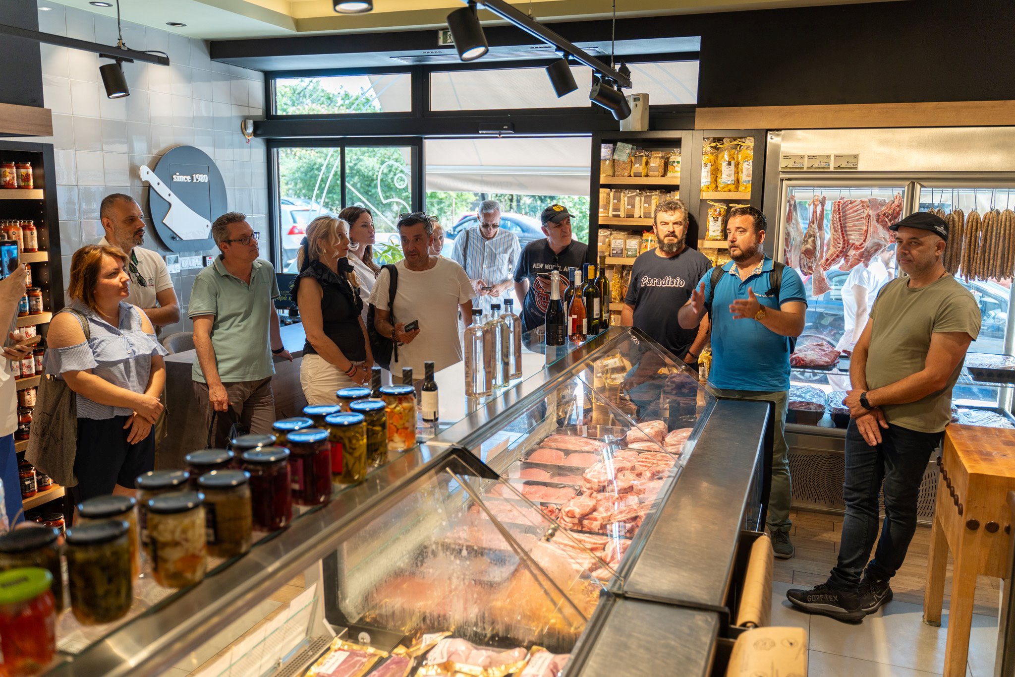 Με την ολοκλήρωση του θεωρητικού μέρους του εργαστηρίου το γαστρονομικό ταξίδι συνεχίστηκε με τις επισκέψεις – ξεναγήσεις σε επιχειρήσεις παραγωγής και διάθεσης τοπικών προϊόντων και συγκεκριμένα: το Κρεοπωλείο «Βαγγέλης Χατζηαγγελίδης» στο Πολύκαστρο όπου οι συμμετέχοντες έμαθαν για τα τοπικά είδη κρέατος και τις τεχνικές παραγωγής αλλά και μαγειρικής τους, το κρυμμένο μέσα σε ένα ολόφυτο δάσος δίπλα στο ποτάμι, Οινοποιείο «Μικρό Κτήμα Τίτου» στη Γουμένισσα, με ξενάγηση και οινογνωσία των πολυβραβευμένων ετικετών του, το πτηνοτροφείο «Αυγά Γουμένισσας - Γρηγόρης Γιαπατζής» και τον παραδοσιακό νερόμυλο και χώρο εστίασης της επιχείρησης. Σε μια μικρή ανάπαυλα δροσιάς στο "Gala Wine Bar” στον παραδοσιακό οικισμό της Γουμένισσας, πραγματοποιήθηκε στρογγυλό τραπέζι με φορείς και επιχειρηματίες της τουριστικής γαστρονομικής αλυσίδας, όπου μεταξύ άλλων, ο πρόεδρος του Εμπορικού Συλλόγου Γουμένισσας κ. Σάκης Τραχανίδης αναφέρθηκε στις πρωτοβουλίες του Συλλόγου για την ανάπτυξη της γαστρονομικής ταυτότητας της περιοχής ενώ ο οινοποιός Χρήστος Αϊδαρίνης αναφέρθηκε στην ιστορία και την αξία κρασιών ΠΟΠ και ΠΓΕ της αμπελουργικής ζώνης της Γουμένισσας, ενός από τους ομορφότερους αμπελότοπους της Ελλάδας.