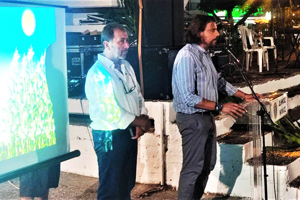 Στη συνέχεια ο γεωπόνος και καλλιεργητής καλαμποκιού Σταύρος Στεφανίδης μίλησε για την προγονική προέλευση του δημητριακού στο νότιο Μεξικό, τα διατροφικά οφέλη και τις χρήσεις του καλαμποκιού στη φυτική, ζωική παραγωγή και στη βιομηχανία.