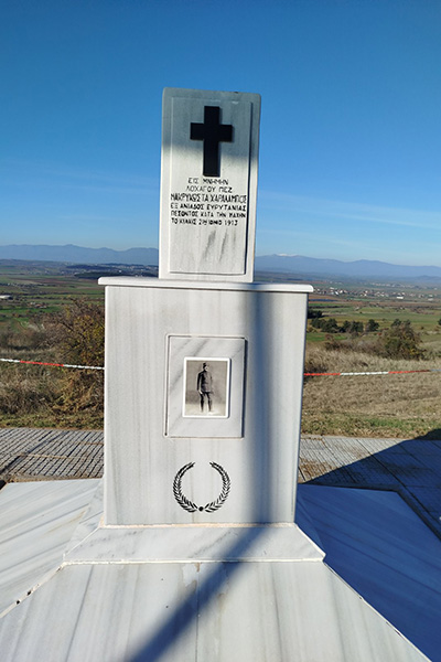 Σε λόφο του υψώματος "ΚΑΜΠΑΝΙ" το 1963 ανεγέρθηκε μνημείο από τους απογόνους του πεσόντος. Το 1966 πραγματοποιήθηκε επίσκεψη - προσκύνημα ομάδας εργαζομένων της Πειραϊκής - Πατραϊκής, υπό τον τότε διευθυντή της Κώστα Μακρυκώστα, υιό του ήρωα Λοχαγού. Στα επόμενα χρόνια το μνημείο ξεχάστηκε και κατέρρευσε. Το 2016, ο Ταξίαρχος τότε Στυλιανός Μπούρλος, δισέγγονος του ήρωα λοχαγού Μακρυκώστα, εντόπισε το ερειπωμένο μνημείο και προέβη σε όλες τις ενέργειες ώστε το μνημείο να αναστηλωθεί και να συμπεριληφθεί στο μητρώο των στρατιωτικών μνημείων. Την 20ή Ιουνίου 2018 έγινε και το πρώτο επίσημο μνημόσυνο στο χώρο.