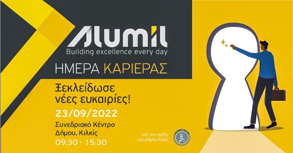 Η Ημέρα Καριέρας Alumil θα γίνει την Παρασκευή 23 Σεπτεμβρίου 2022, στο Συνεδριακό Κέντρο του Δήμου Κιλκίς, από τις 9:30 το πρωί μέχρι τις 3:30 το μεσημέρι και η διοργάνωση είναι υπό την αιγίδα του Δήμου Κιλκίς.