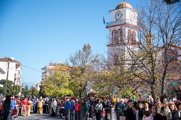 Το πρωί της Κυριακής 29 Οκτωβρίου τελέστηκε ο πανηγυρικός Όρθρος και η Αρχιερατική Θεία Λειτουργία προεξάρχοντος του Σεβασμιωτάτου Μητροπολίτου Πολυανής και Κιλκισίου κ. Βαρθολομαίου, τον οποίο πλαισίωσαν ο Προϊστάμενος του Ιερού Ναού Παν. Αρχιμ. π. Επιφάνιος Θεοδωρίδης, ο Εφημέριος του Ναού Παν. Αρχιμ. Ευστάθιος Κοντοζίδης, ο Πρωτ. π. Νικόλαος Μπαγιέγκο, ο Αιδ. π. Χριστοφόρος Μουγίγκο, ο Αρχιδιάκονος π. Φιλόθεος Τσαμπαζάκης και ο Διάκονος του Ναού π. Σάββας Αμοιρίδης.