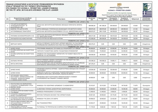 Τα επενδυτικά σχέδια συνολικού κόστους 2.564.599,32€ που πληρούσαν τις προϋποθέσεις ένταξης αξιολογήθηκαν και κατατάχθηκαν κατά φθίνουσα σειρά με βάση τη βαθμολογία τους και προωθούνται προς ένταξη. Τα επιλαχόντα επενδυτικά σχέδια αναμένεται να εγκριθούν και άμεσα να ενταχθούν μετά την ολοκλήρωση της διαδικασίας μεταφοράς πιστώσεων και της σχετικής έγκρισης από την ΕΥΕ ΠΑΑ Ανταγωνιστικότητα. Η Δημόσια Δαπάνη θα καταβληθεί από το Ελληνικό Δημόσιο (Υπουργείο Αγροτικής Ανάπτυξης και Τροφίμων) και το Ευρωπαϊκό Γεωργικό Ταμείο Αγροτικής Ανάπτυξης. Σημειώνεται ότι όλοι οι ενδιαφερόμενοι έχουν το δικαίωμα να υποβάλλουν ένσταση κατά της παραπάνω απόφασης της Ε.Δ.Π. Στον πίνακα που ακολουθεί εμφαίνονται τα επενδυτικά σχέδια που υποβλήθηκαν, η σειρά κατάταξής τους ανά δράση καθώς και ο εγκεκριμένος προϋπολογισμός τους. Τονίζεται, τέλος, ότι η Αναπτυξιακή Κιλκίς αιτήθηκε από το Υπουργείο Αγροτικής Ανάπτυξης και Τροφίμων πρόσθετη κατανομή πιστώσεων ύψους 1.000.000€ περίπου με στόχο την άμεση έναρξη υλοποίησης όλων των εγκεκριμένων έργων αλλά και την δυνατότητα ένταξης νέων που θα ενισχύσουν σημαντικά την τοπική οικονομία και ανάπτυξη.