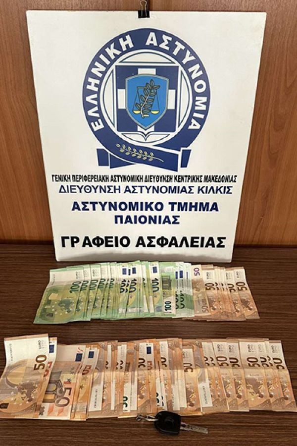 Σε έρευνα που έγινε στην οικία του σε περιοχή της Χαλκιδικής βρέθηκε και κατασχέθηκε το χρηματικό ποσό των 5.800 ευρώ.