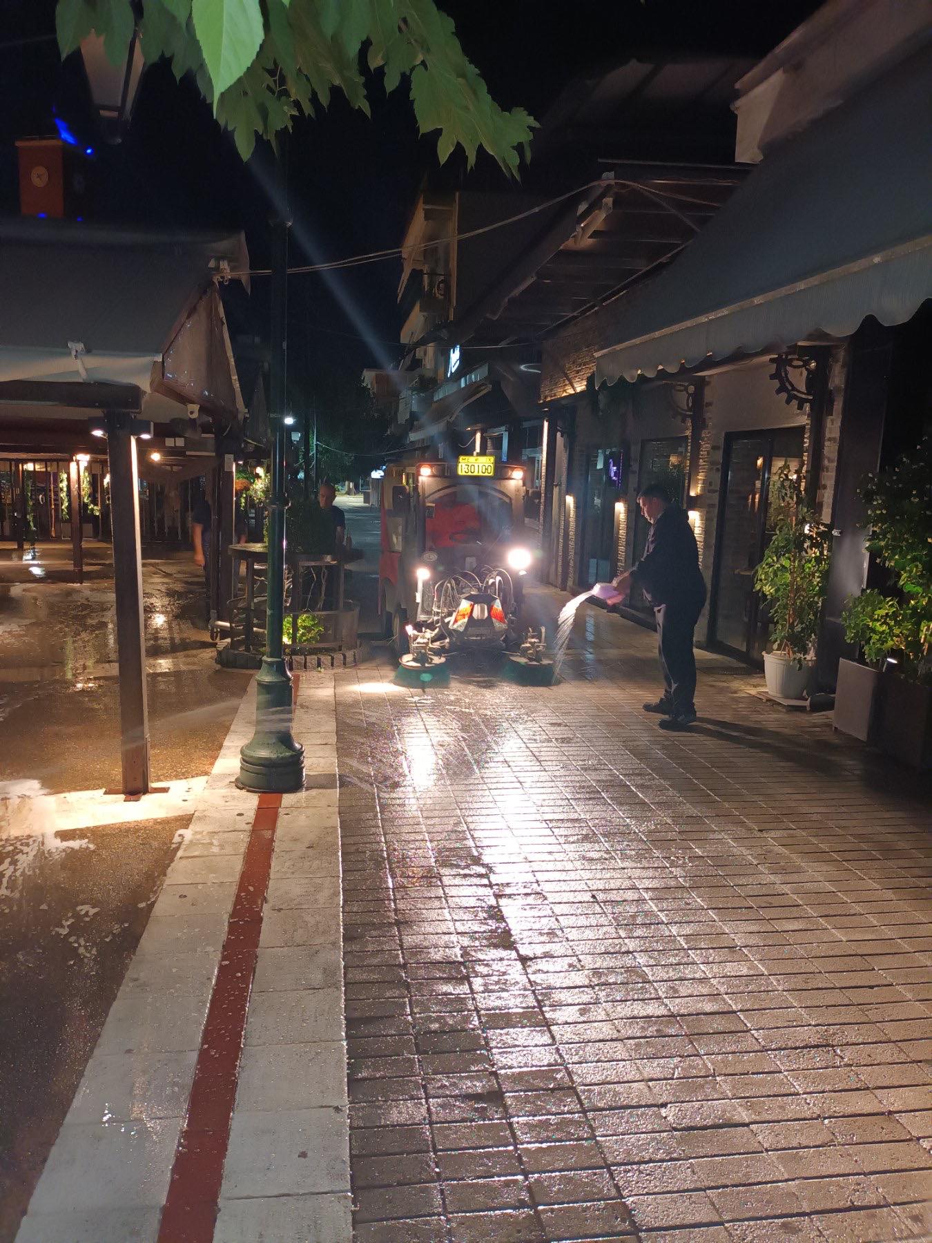 Χρησιμοποιώντας τον σύγχρονο εξοπλισμό που έχει πλέον στην διάθεση της, πραγματοποιεί τις νυχτερινές ή τις πολύ πρωινές ώρες, καθαρισμούς και πλύσεις όπου διαπιστώνεται η ανάγκη.